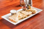Grilled chicken, tomato, scallion, pepper jack, cheddar, with sour cream, salsa, jalapeno slices.