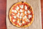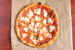 Fresh mozzarella cheese, basil, EVOO, lightly charred crust.
