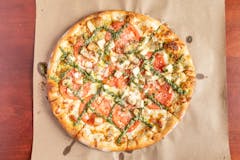 Grilled chicken, mozzarella, vine-ripened tomatoes, pesto, fresh basil.