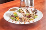 sliced thin and served over mixed greens drizzled with wasabi dressing.
