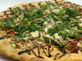 Goat cheese, roasted red peppers, sweet Italian sausage finished with arugula, balsamic glaze, EVOO, & asiago.